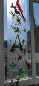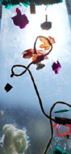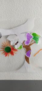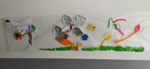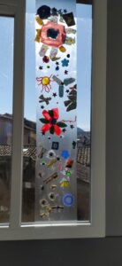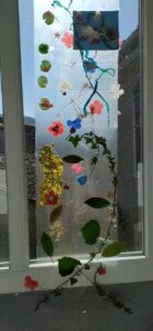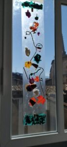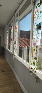 Nous participons au Printemps des Poètes au mois de mars: les écoliers écrivent des Haïkus sur des post its de couleurs collés sur toutes les portes de l’établissement, et les collégiens ont écrits des poèmes accrochés sur les fils tendus comme une corde à linge, d’ autres ont créé une œuvre artistique poétique toute en légèreté en transparence aux fenêtres dont le titre est: “Prolifération végé